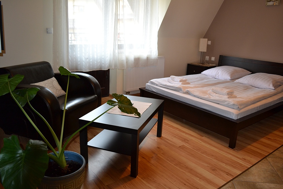 Do Państwa dyspozycji oddajemy 6 komfortowych, nowoczesnych, w pełni wyposażonych apartamentów. Pokoje są przestronne, wykończone z największą starannością. W naszych apartamentach komfortowo może mieszkać od 2 do 6 osób.